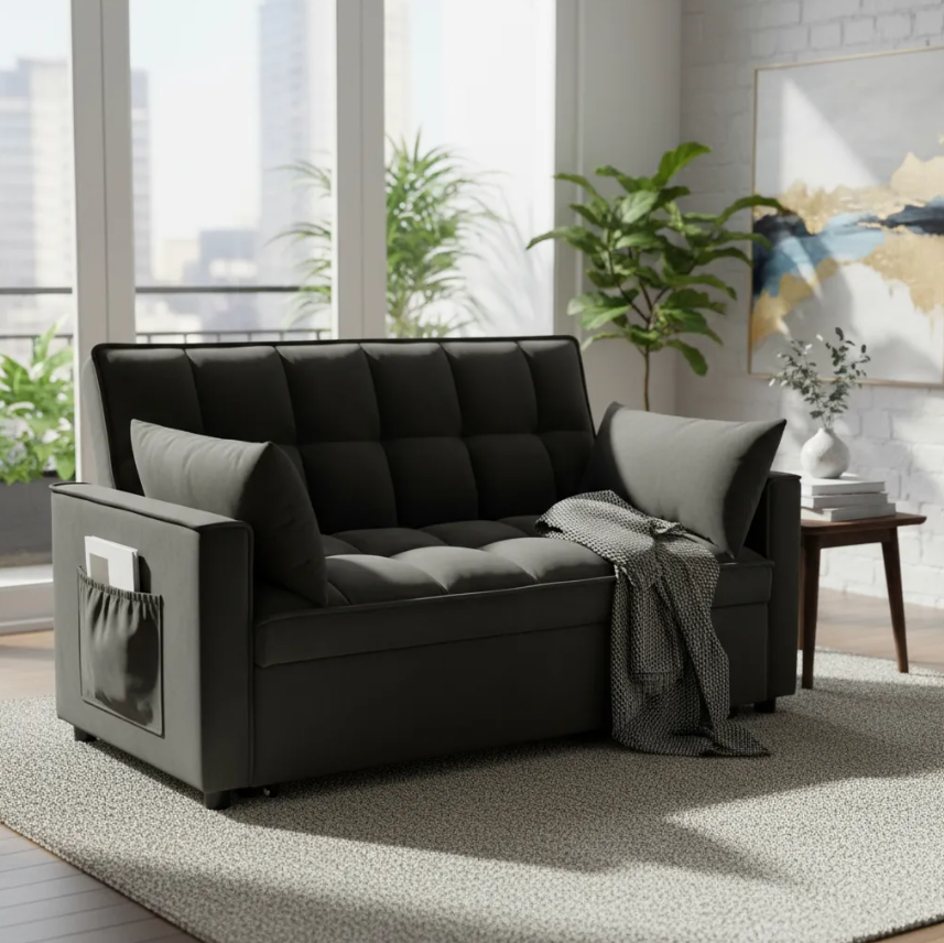 Convierte cualquier rincón en un lugar acogedor y funcional con el Futón Cama Negro. Su diseño práctico y estilo contemporáneo te permitirá disfrutar de una experiencia de descanso inmejorable, ya sea para tus visitas o para tu uso diario.