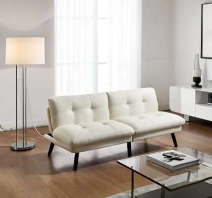 El diseño reclinable de este futón permite ajustar la posición según tus necesidades, brindando comodidad tanto para sentarse como para descansar. Su estructura sólida y elegante color negro de las patas aportan un toque moderno que complementará tu decoración.