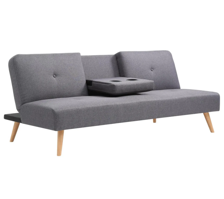 Cuenta con respaldo reclinable y un respaldo central plegable que incorpora prácticos apoya vasos, ideal para relajarte mientras ves una película o compartes con amigos. Fabricado con estructura de madera de pino y tapizado en tela resistente, ofrece durabilidad y confort en cada uso.