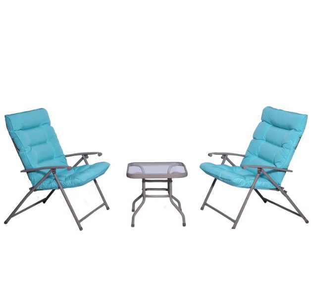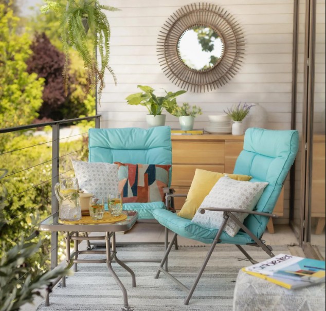 En un vibrante color aqua, este juego de balcón es plegable, lo que facilita su almacenamiento cuando no está en uso. La dificultad de armado es media, pero el juego viene con un manual detallado para una fácil instalación.