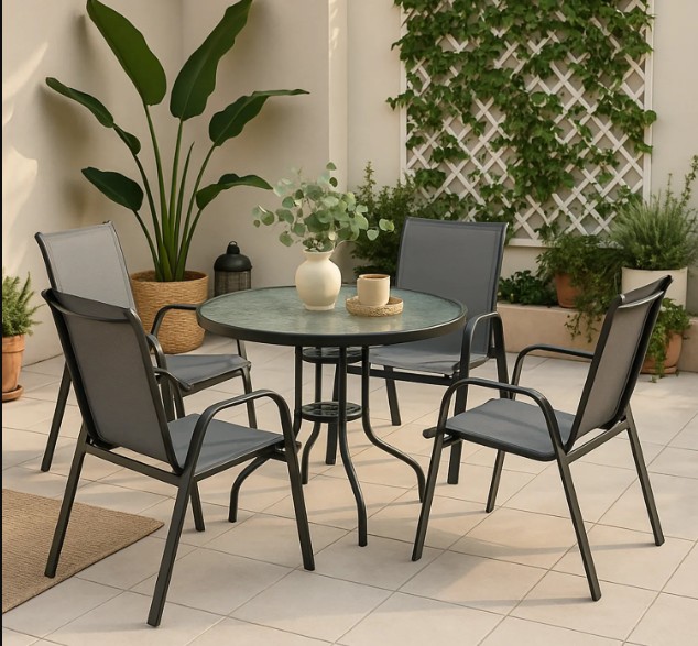 Set Terraza 4 Sillas + Mesa Vidrio $175.990