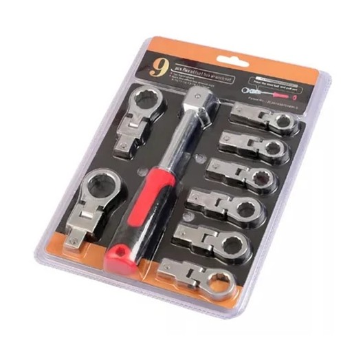 El Set de 9 Llaves Combinadas con Trinquete es un juego de herramientas esencial para cualquier caja de herramientas. Este set incluye 9 llaves combinadas con trinquete de alta calidad, fabricadas en acero cromo vanadio para mayor durabilidad y resistencia.