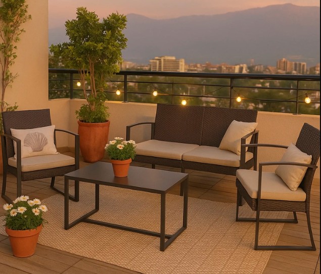 El juego Mendoza está hecho de acero, polipropileno, vidrio y poliéster, lo que le da una gran resistencia y durabilidad. Su color marrón le da un toque clásico y elegante a tu espacio exterior. El juego se arma con una dificultad media y requiere armado, pero no es plegable ni cuenta con ruedas. El juego incluye un sofá de 112.5x61x74 cm, dos sillas de 59x61x74 cm y una mesa de 80x40x41.5 cm. Con un peso de 26.36 kg, este juego es ideal para crear un ambiente acogedor y funcional en tu terraza.