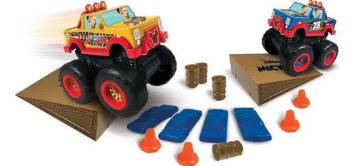Con 2 Monster Trucks impulsados por fricción Mickey, los niños pueden crear sus propias aventuras todoterreno de Mickey. ¡Conduce a través de los conos y barriles, salta la rampa o simplemente corre por el piso!