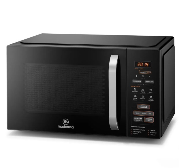 Este microondas digital Mademsa, modelo MM28FB, te ofrece una capacidad de 28 litros, ideal para calentar o cocinar tus platos favoritos. Su diseño negro le dará un toque elegante a tu cocina. Con una potencia de 1250 W, cocinarás de manera rápida y eficiente. El panel digital intuitivo facilita su uso, con funciones preprogramadas para una experiencia sin complicaciones.