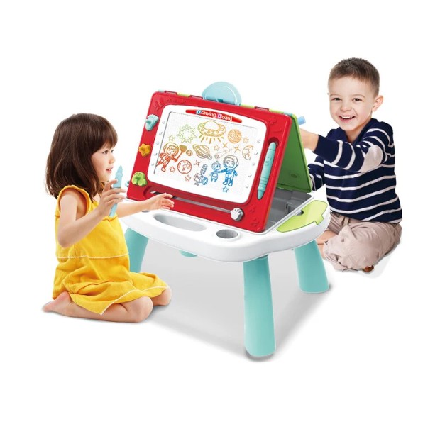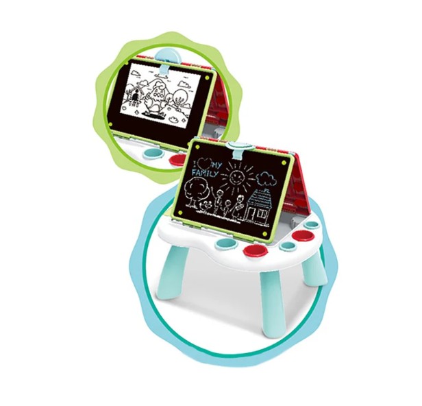 Pizarra con una cara magnética y otra de tiza integradas en una mesa que actúa de soporte. Con este producto los más pequeños se lo pasarán en grande haciendo diferentes creaciones. Ideal para el desarrollo de la imaginación, creatividad y motricidad fina.