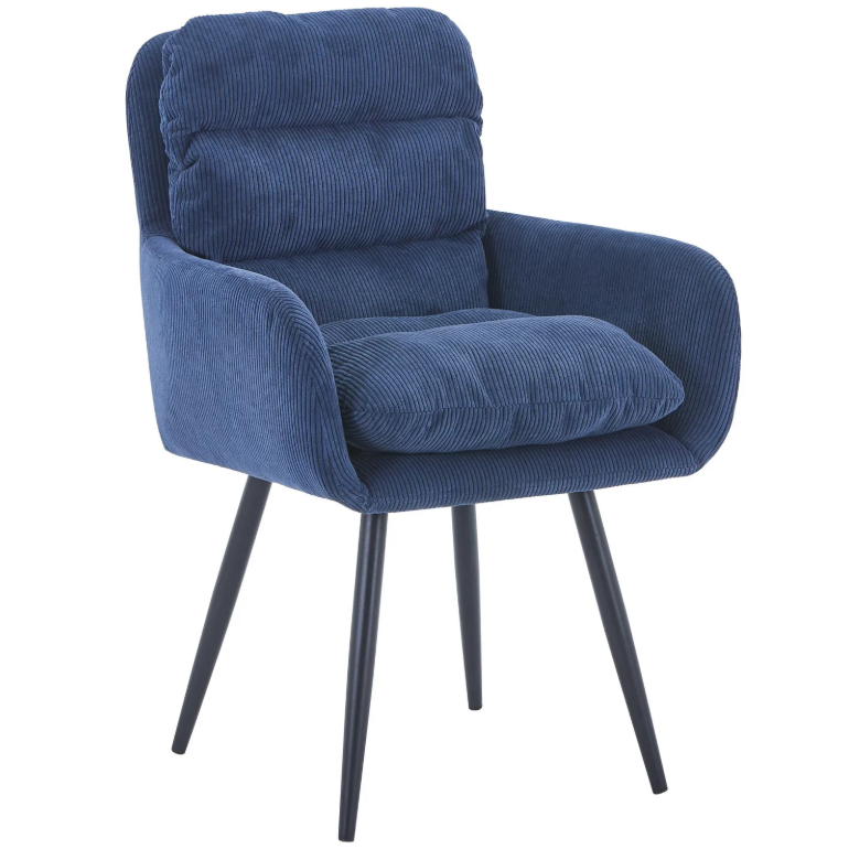 Sus dimensiones de 63 cm de ancho, 90.5 cm de alto y 62.5 cm de profundidad ofrecen un asiento cómodo y ergonómico que se adapta a cualquier ambiente, ya sea el living, dormitorio u oficina. Su tapiz en tono azul aporta frescura y elegancia, convirtiéndose en un elemento decorativo que destaca por su diseño contemporáneo y su gran comodidad.