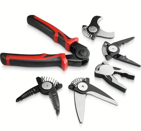 Este juego de capas Pelacables viene con cinco cabezales diferentes, incluyendo alicates, tijeras, cortadores de cables, pelacables y cabezales de prensado. El diseño 5 en 1 garantiza la comodidad y satisface todas sus diversas necesidades.