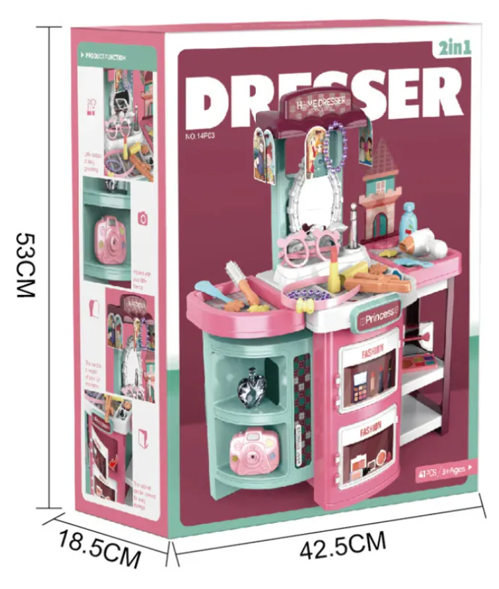 A tu bebé le encantará este set de belleza lleno de diversión y creatividad. Con un total de 41 piezas, incluyendo un espejo de maquillaje, secador de pelo, perfume, cámara, caja de maquillaje, armario, peine y muchos más, este juego de simulación ofrece a tu pequeña princesa la oportunidad de dejar volar su imaginación y disfrutar de horas de diversión.