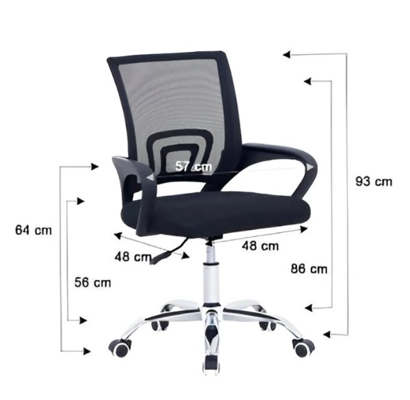 La Silla modelo Niza Crome es una silla ideal para usar en oficinas y en el hogar. Base de pvc reforzado con ruedas giratorias, apoyabrazos confeccionados en pvc de alta resistencia, respaldo en tela Mesh y base del asiento con relleno de alta densidad cubierta con un textil resistente. Es práctica, cómoda, joven y dinámica en su diseño. Cuenta con nivelación de altura. Peso máximo soportado: 120 kg.
