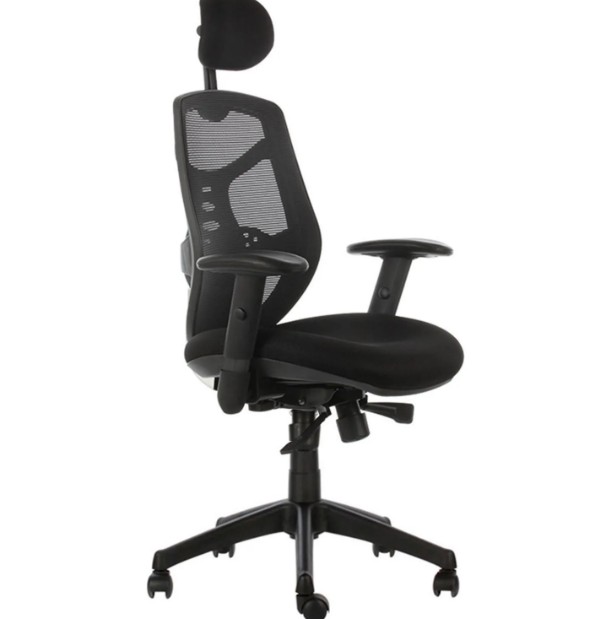 Dentro de sus características destacan su mecanismo sincrónico con el cual su respaldo se reclina usando solo una palanca que fija o suelta la posición. Su respaldo de malla con apoyo lumbar plástico y su asiento tapizado en tela proporcionan un soporte perfecto para toda la jornada de trabajo.