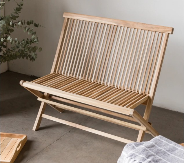 Tanto la silla, como la silla doble, reposera y mesa de apoyo, se pueden plegar para ahorrar espacio cuando no están en uso.
