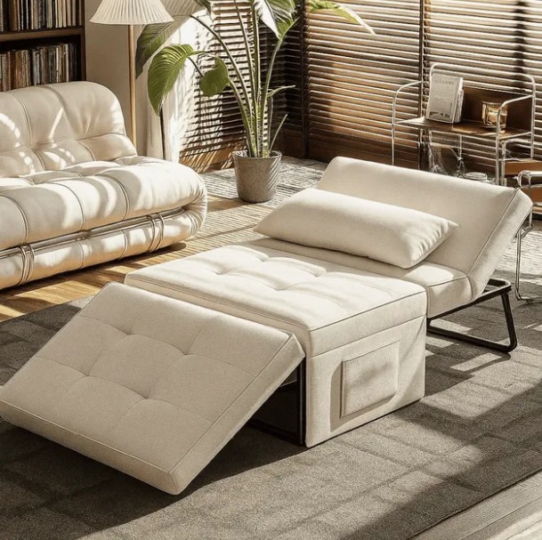 El segundo punto es su diseño 4 en 1, que ofrece una versatilidad excepcional. Este mueble puede transformarse en silla, puff, reposera o cama individual en cuestión de segundos. La transición entre posiciones es suave y segura, ideal para quienes valoran aprovechar al máximo cada metro cuadrado.