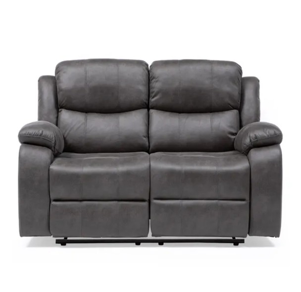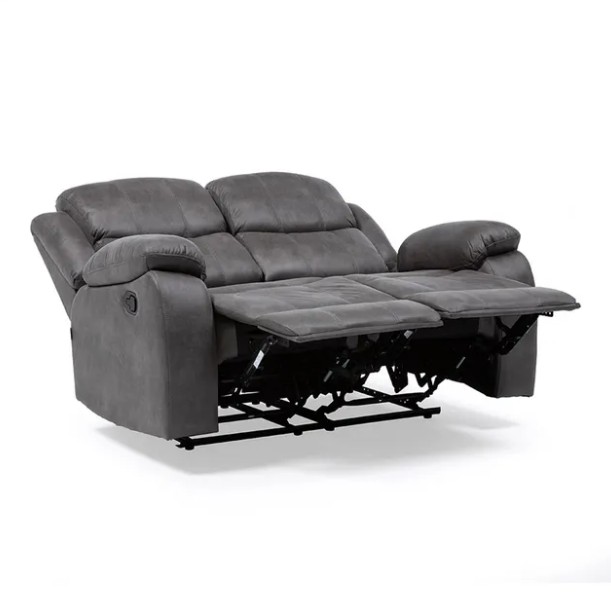 Un sofá de dos cuerpos, completamente reclinable en ambos asientos, diseñado con una estructura metálica y tapizado en tela de cuero viejo en dos opciones de color: gris y beige, sería una pieza de mobiliario versátil y elegante para cualquier sala de estar. Imagina un diseño moderno y contemporáneo, con líneas limpias y minimalistas que se adaptan fácilmente a una variedad de estilos de decoración. La estructura metálica proporcionaría una base sólida y resistente, mientras que el acabado en tela de cuero viejo agregaría un toque de rusticidad y calidez. Cada asiento del sofá sería reclinable individualmente, lo que permitiría a los usuarios ajustar el respaldo a su posición preferida para una máxima comodidad. Los reposabrazos acolchados ofrecerían apoyo adicional y confort durante horas de relajación.